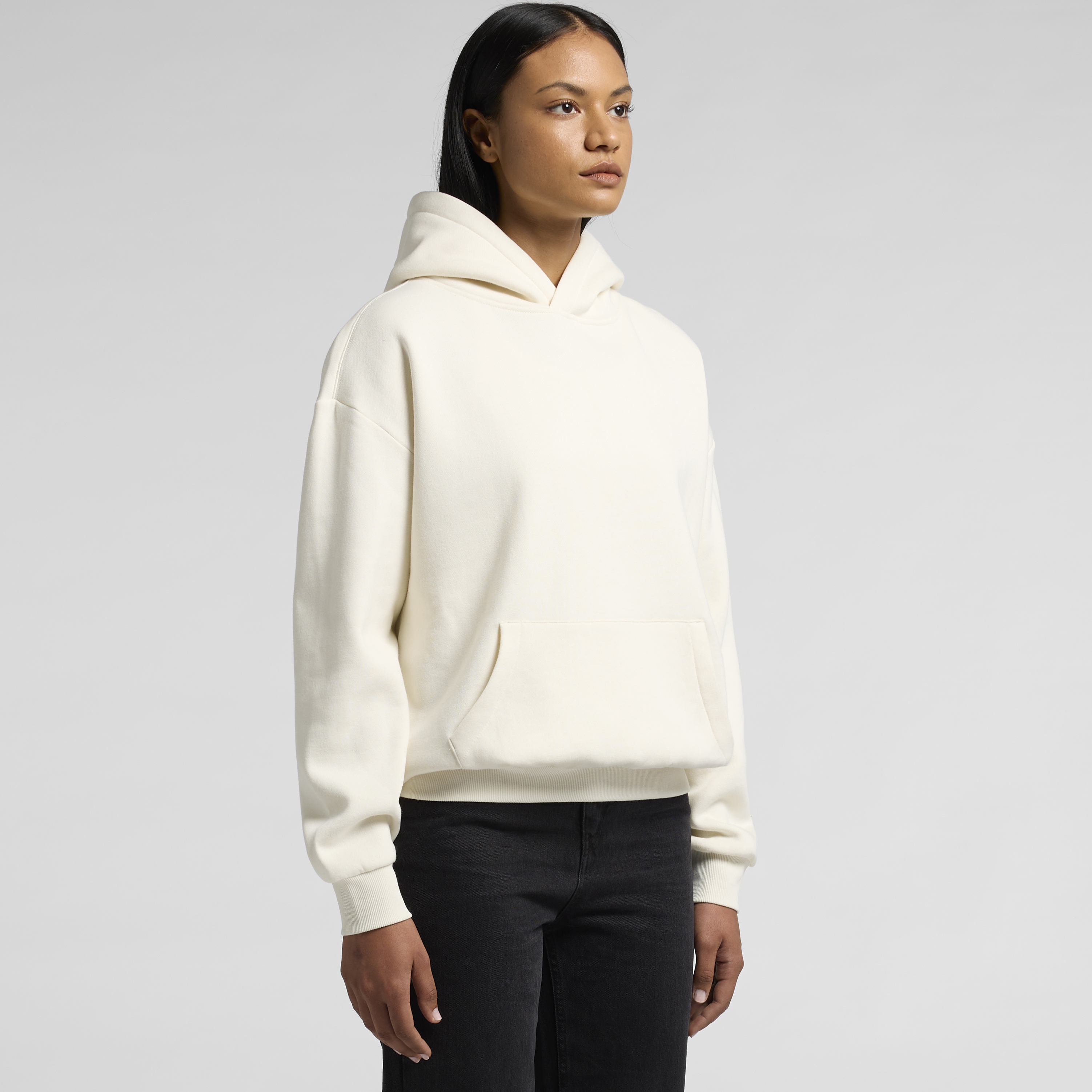 Construction: Zip hood, drop shoulder, kangaroo pocket, self-fabric lined hood, no drawcord, YKK zip, sleeve cuff ribbing